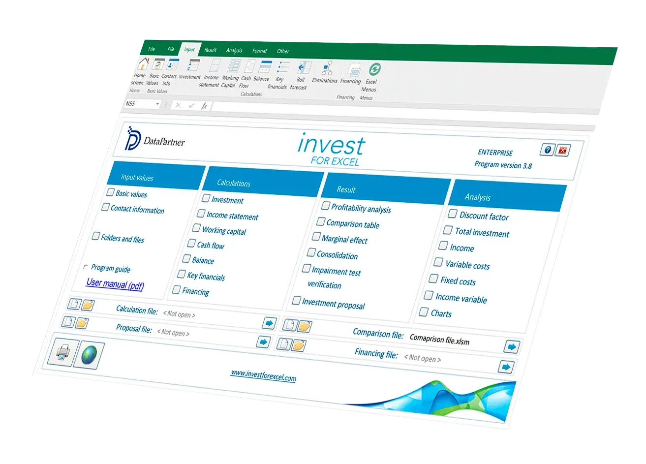 Invest for Excel® is an Excel -based software that can be used for all kinds of business modelling: